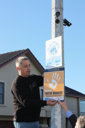 Mr Vukich and Mark Higson were attaching signs at the top of the street warning criminals that SelectaDNA is now being used in the area.